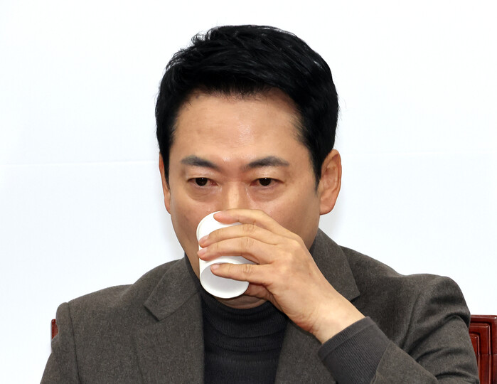 | ▲ 국민의힘 장동혁 대표가 19일 국회에서 열린 최고위원회의 도중 물을 마시며 목을 축이고 있다. 2026.2.19 (사진=연합뉴스) |