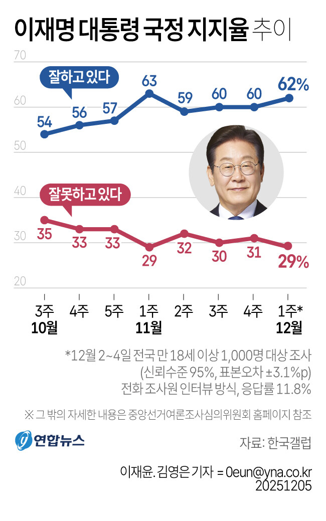 | ▲ 이재명 대통령 국정 지지율 추이 (제공=연합뉴스) |