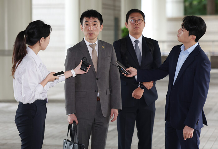 ▲ 김용현 전 국방부장관에 대한 구속영장 심문이 진행된 25일 서초구 서울중앙지방법원에서 김 전 장관의 변호인인 이하상 변호사가 취재진 질문에 답하고 있다. 2025.6.25 (사진=연합뉴스)
