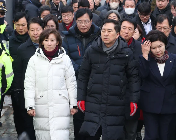 | ▲ 윤석열 체포 저지를 위해 한남동 관저 앞에 모인 나경원 |