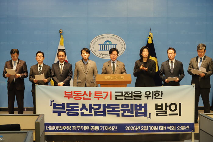 더불어민주당 국회 정무위원회 소속 의원들이 10일 국회에서 ‘부동산감독원’ 설치를 골자로 한 법안을 발의했다. 부동산 시장을 투기 수단으로 악용하는 불법행위가 조직화·지능화되는 만큼, 부처별로 흩어진 권한과 정보를 통합해 상설 감독·수사 체계를 만들겠다는 취지다.
