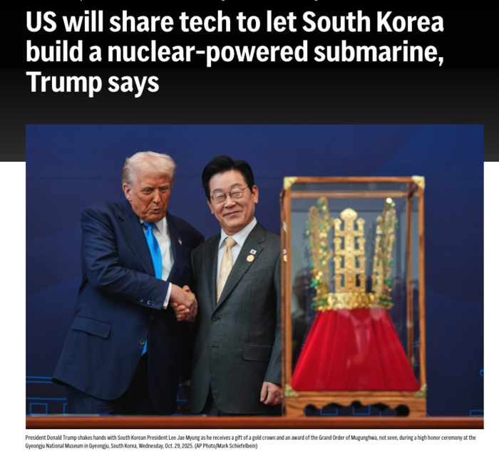 한국과 미국이 최근 한미 정상회담을 통해 핵추진 잠수함(nuclear-powered submarine) 건조 승인과 무역 협상 타결을 성사시키면서, 외신들도 이번 성과를 주목하고 있다.